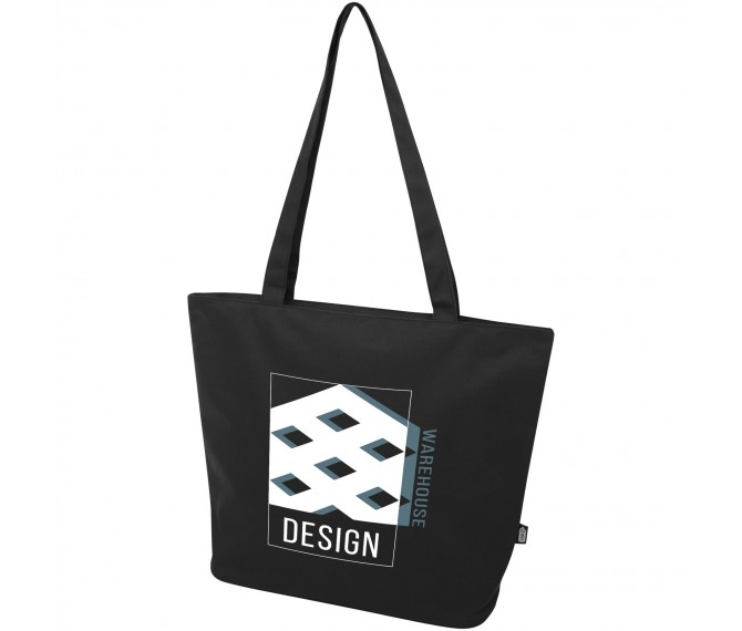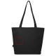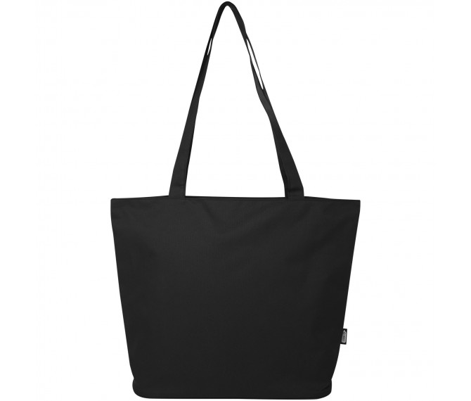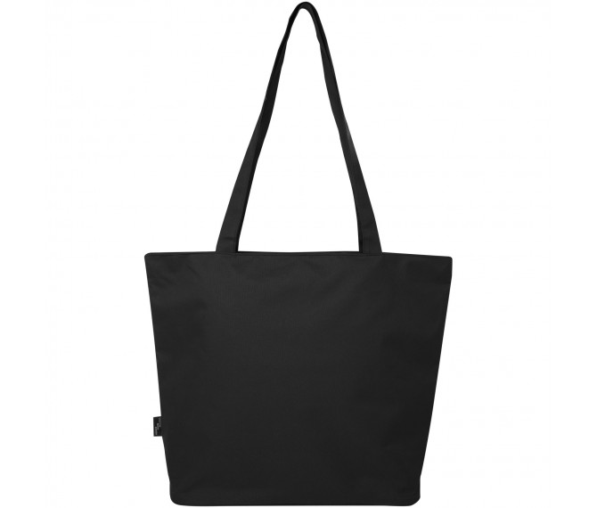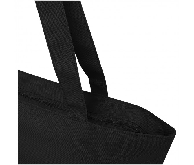 Gemaakt van waterafstotend 600D RPET, is de Panama GRS gerecycleerde zippered tote bag een perfecte multifunctionele tas voor evenementen, naar het strand of voor boodschappen. Het heeft een hoofdcompartiment met rits en een binnenzak met rits die groot genoeg is om je telefoon en andere waardevolle spullen in op te bergen. De handvatten zijn 34 cm lang, waardoor de tote bag gemakkelijk over de schouder te dragen is. Draagvermogen tot 10 kg. PVC-vrij.