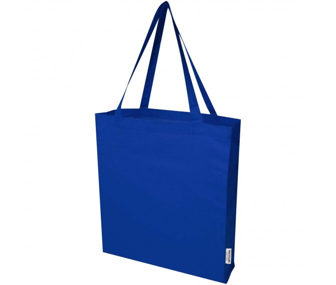 De Madras draagtas gemaakt van 100% GRS-gecertificeerd gerecycled katoen is de perfecte tas om weg te geven tijdens elk evenement, conferentie of om te gebruiken als boodschappentas voor kleine boodschappen. De katoendichtheid van 140 g/m² katoen maakt de tas stevig, gaat lang mee en is geschikt om zware spullen in het hoofdvak te dragen. Met de 30 cm lange schouderhengsels is deze draagtas makkelijk mee te nemen. De afdrukmethoden die beschikbaar zijn voor deze draagtas zijn ook GRS-gecertificeerd, wat ervoor zorgt dat de hele toeleveringsketen transparant en gecertificeerd is. Gemaakt in India. Geschikt voor een gewicht tot 5 kg.