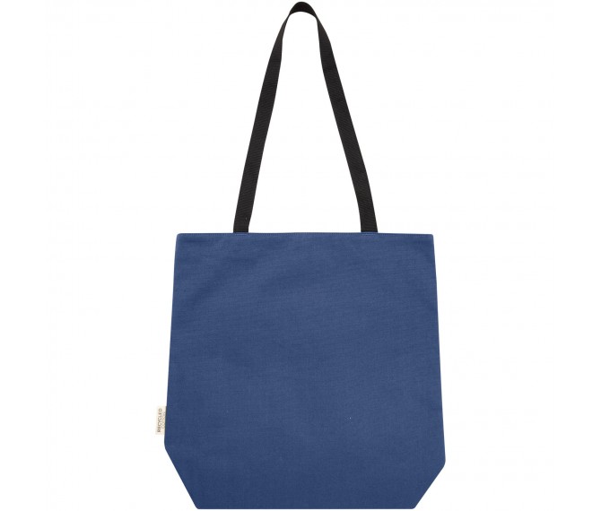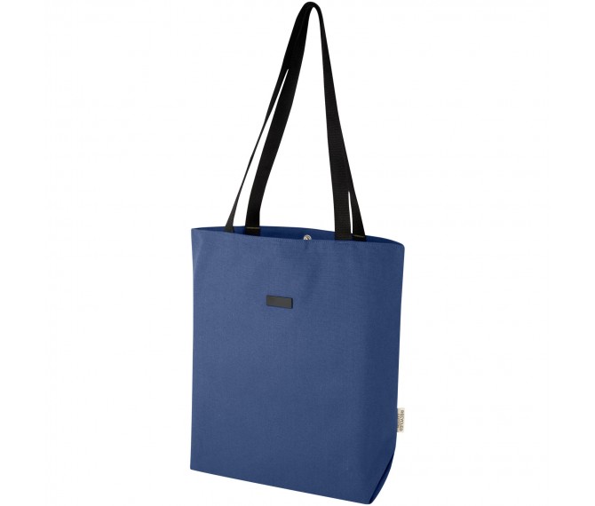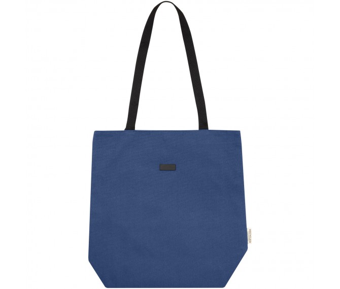 Draagtas van GRS-gecertificeerd gerecycled canvas en GRS-gecertificeerde RPET-voering. Deze veelzijdige draagtas heeft een gewatteerd 15" laptopvak en twee sleufvakken aan de binnenkant voor een telefoon, portemonnee of accessoires, een gemakkelijke knoopsluiting bij de opening en comfortabele katoenen handgrepen. Het decoratieve metalen plaatje kan een logo laten opvallen door de subtiele en matte afwerking.
