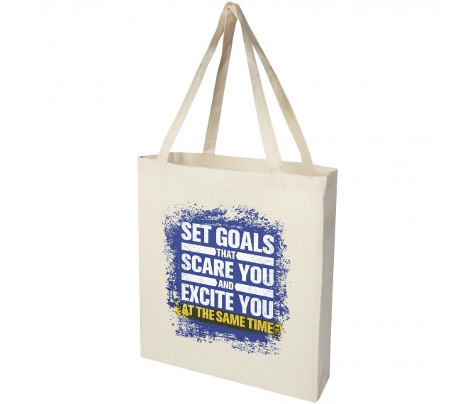 De Madras draagtas gemaakt van 100% GRS-gecertificeerd gerecycled katoen is de perfecte tas om weg te geven tijdens elk evenement, conferentie of om te gebruiken als boodschappentas voor kleine boodschappen. De katoendichtheid van 140 g/m² katoen maakt de tas stevig, gaat lang mee en is geschikt om zware spullen in het hoofdvak te dragen. Met de 30 cm lange schouderhengsels is deze draagtas makkelijk mee te nemen. De afdrukmethoden die beschikbaar zijn voor deze draagtas zijn ook GRS-gecertificeerd, wat ervoor zorgt dat de hele toeleveringsketen transparant en gecertificeerd is. Gemaakt in India. Geschikt voor een gewicht tot 5 kg.