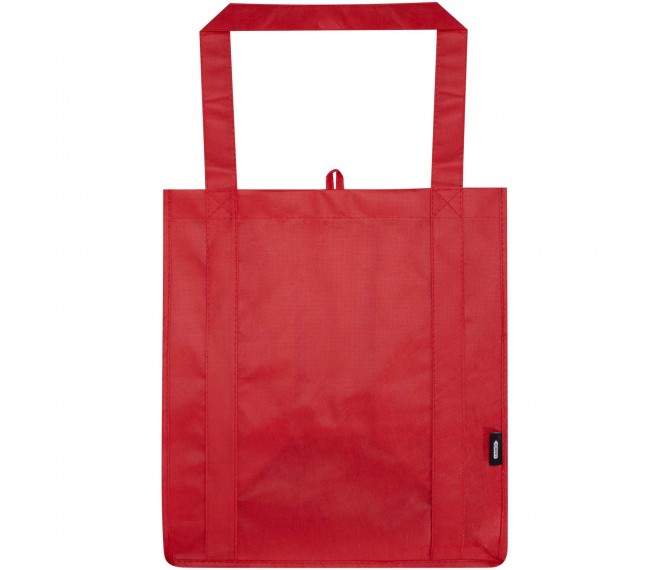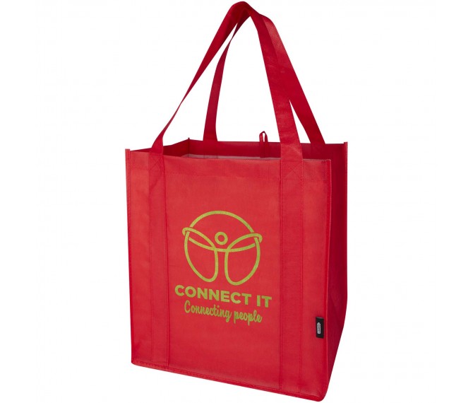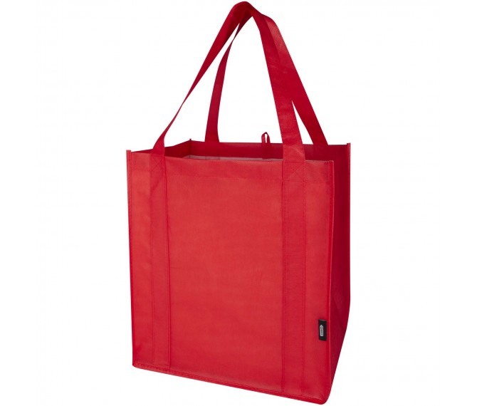 Gemaakt van duurzaam en scheurbestendig niet-geweven RPET. De Liberty GRS gecertificeerde gerecyclede draagtas beschikt over een ondersteunende bodem, waardoor hij veelzijdig en stevig is. De draagtas heeft een groot hoofdvak en 25 cm lange handvatten. Inhoud: 29 liter. Geschikt voor een gewicht tot 12 kg.