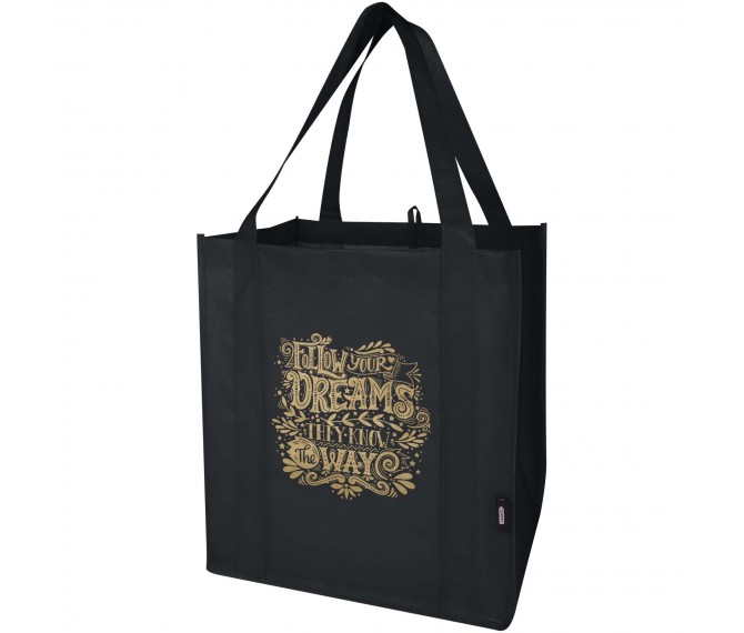 Gemaakt van duurzaam en scheurbestendig niet-geweven RPET. De Liberty GRS gecertificeerde gerecyclede draagtas beschikt over een ondersteunende bodem, waardoor hij veelzijdig en stevig is. De draagtas heeft een groot hoofdvak en 25 cm lange handvatten. Inhoud: 29 liter. Geschikt voor een gewicht tot 12 kg.