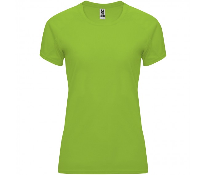 Technisch raglanshirt met korte mouwen voor dames. Ronde hals met bijpassende bedekte naden. Mouwpanelen. Bijpassende overlock in het armsgat en mouwpaneel. CONTROL-DRY-stof. Verwijderbaar etiket. Technische stof. Uv-beschermingsfactor. Het model is 173 cm en draagt maat S.