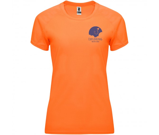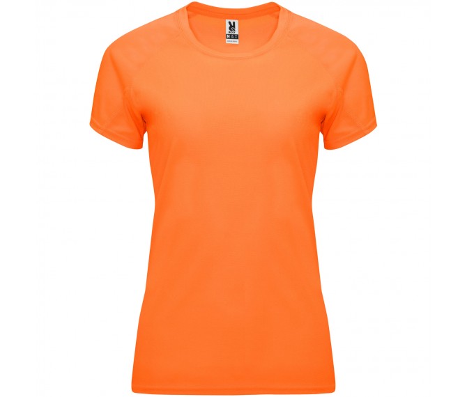 Technisch raglanshirt met korte mouwen voor dames. Ronde hals met bijpassende bedekte naden. Mouwpanelen. Bijpassende overlock in het armsgat en mouwpaneel. CONTROL-DRY-stof. Verwijderbaar etiket. Technische stof. Uv-beschermingsfactor. Het model is 173 cm en draagt maat S.
