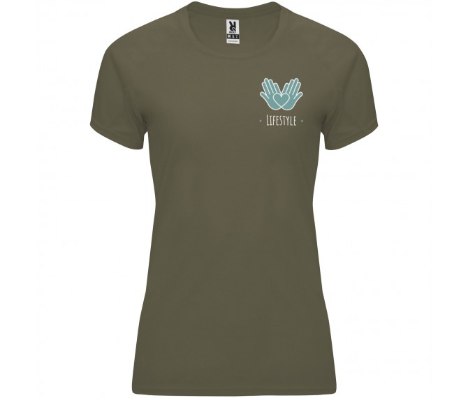 Technisch raglanshirt met korte mouwen voor dames. Ronde hals met bijpassende bedekte naden. Mouwpanelen. Bijpassende overlock in het armsgat en mouwpaneel. CONTROL-DRY-stof. Verwijderbaar etiket. Technische stof. Uv-beschermingsfactor. Het model is 173 cm en draagt maat S.