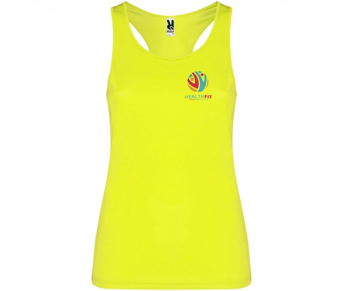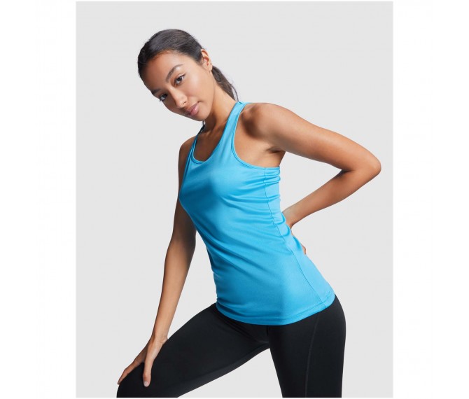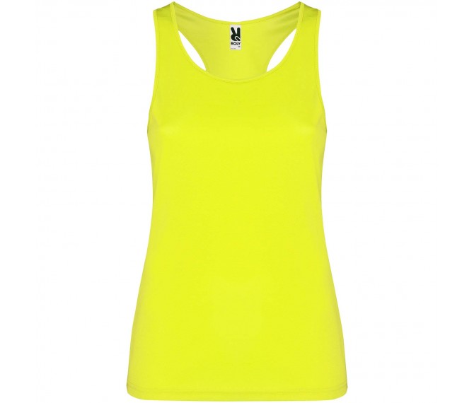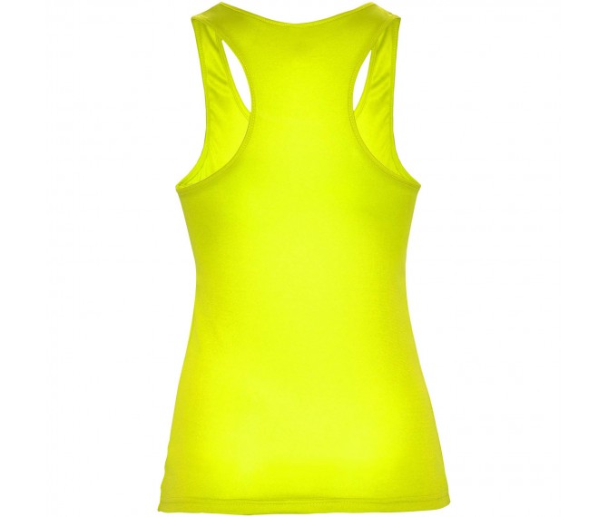 Technische, ademende, gemakkelijk te wassen en te drogen stof. Geribde armsgaten en halslijn. Racerback en zijnaden. Verwijderbaar label.