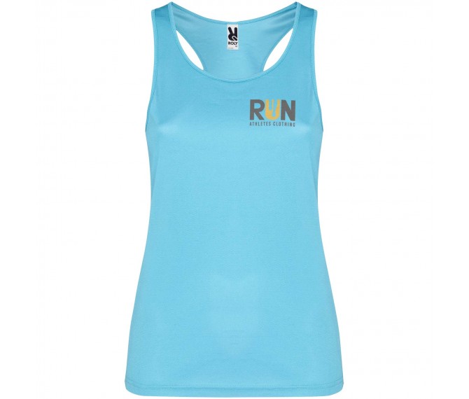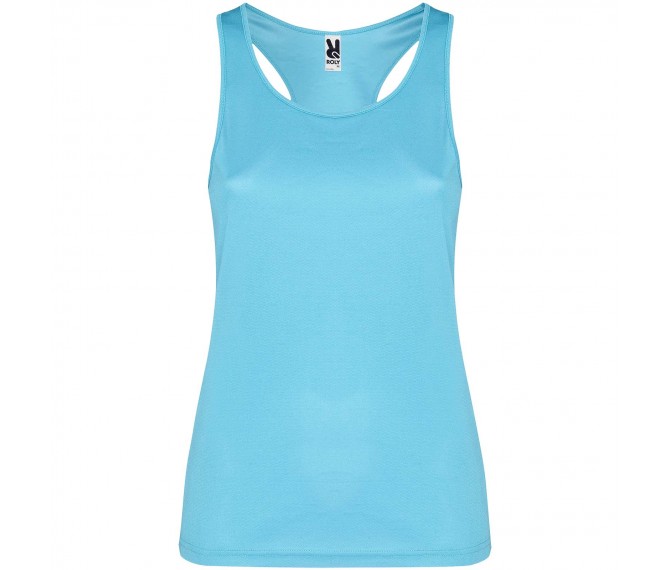 Technische, ademende, gemakkelijk te wassen en te drogen stof. Geribde armsgaten en halslijn. Racerback en zijnaden. Verwijderbaar label.