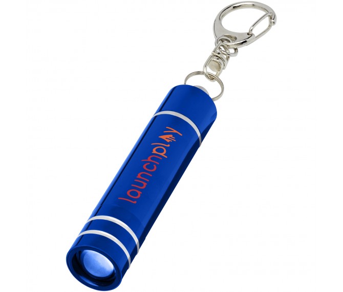 Handige sleutelhanger met ledlamp met zowel zaklamp- als lichtfunctie. De witte ledlamp genereert vijf lumen en wordt bediend met een drukknopschakelaar. Trek de houder naar buiten voor extra licht. Wordt geleverd met een metalen karabijnclip voor eenvoudige bevestiging aan een tas of sleutelbos. Batterijen inbegrepen.