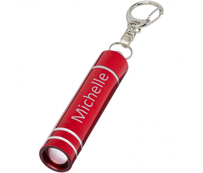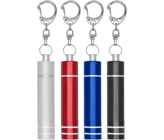 Handige sleutelhanger met ledlamp met zowel zaklamp- als lichtfunctie. De witte ledlamp genereert vijf lumen en wordt bediend met een drukknopschakelaar. Trek de houder naar buiten voor extra licht. Wordt geleverd met een metalen karabijnclip voor eenvoudige bevestiging aan een tas of sleutelbos. Batterijen inbegrepen.