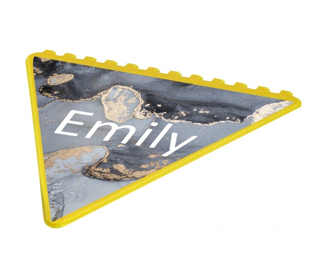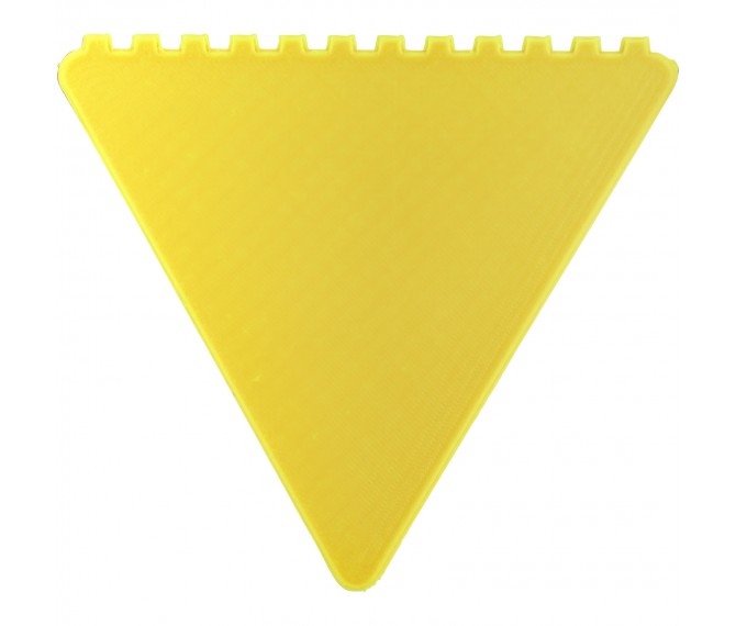 Driehoekige ijskrabber voor het schrapen van de voorruit met een groot decoratiegebied. Alle 3 de zijden kunnen worden gebruikt om ijs van de voorruit te verwijderen. De ijskrabber heeft een gespikkelde afwerking vanwege de aard van het gerecyclede materiaal.Gemaakt in het Verenigd Koninkrijk van gerecycled polystyreen plastic.