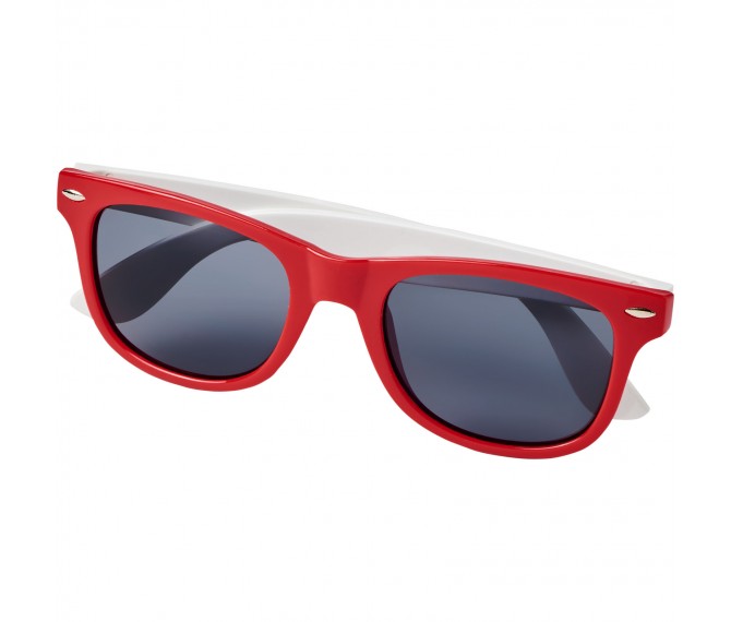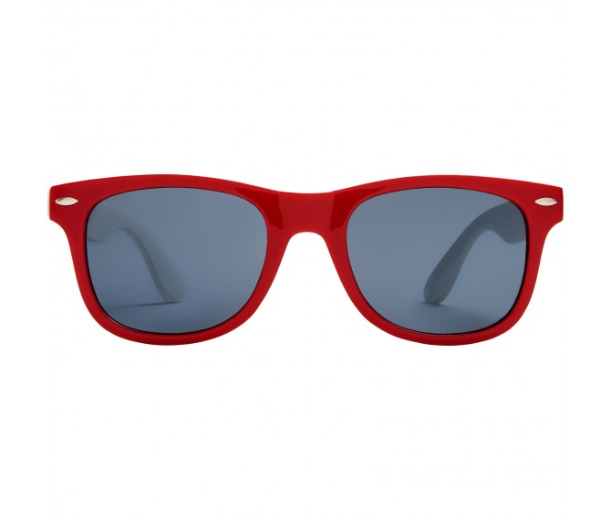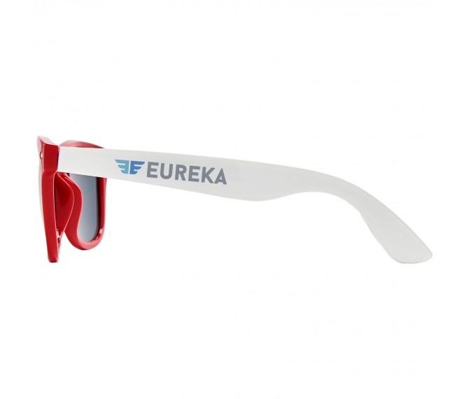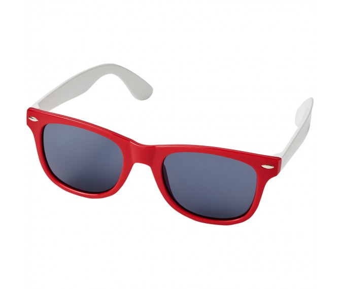 Sun Ray retro design zonnebril met witte pootjes voor een breed scala aan decoratie-opties. Voldoet aan EN ISO 12312-1 en UV-400, glazen zijn van klasse 3.