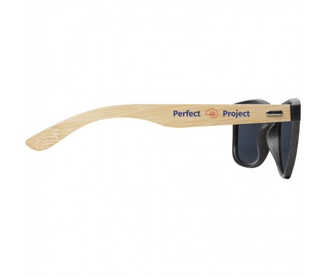 Deze duurzame retro-ontworpen zonnebril is het ideale relatiegeschenk tijdens zomerfestivals, evenementen of andere zonnige buitenactiviteiten. Het frame is gemaakt van een mix van plastic en bamboe, waardoor het gebruik van nieuwe kunststoffen wordt verminderd. Hij is verkrijgbaar in verschillende trendy kleuren. De armen met een lichte en comfortabele pasvorm zijn gemaakt van bamboe dat afkomstig is van duurzame, milieuvriendelijke en maatschappelijk verantwoorde bronnen. Deze bril voldoet aan EN ISO 12312-1, heeft UV400-glazen die zijn geclassificeerd als categorie 3, waardoor het de perfecte keuze is voor bescherming tegen fel zonlicht. Lasergraveren wordt aanbevolen als een duurzame decoratieoptie.