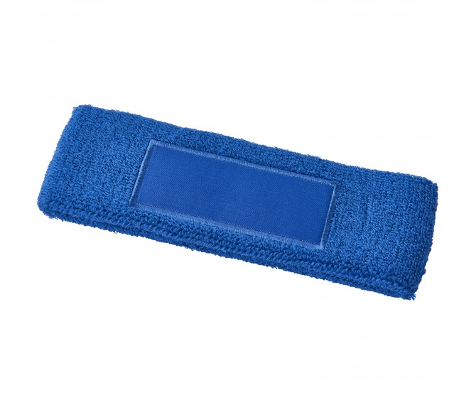 Zachte en absorberende elastische katoenen hoofdband met rechthoekige 90x30mm patch voor het plaatsen van een logo.