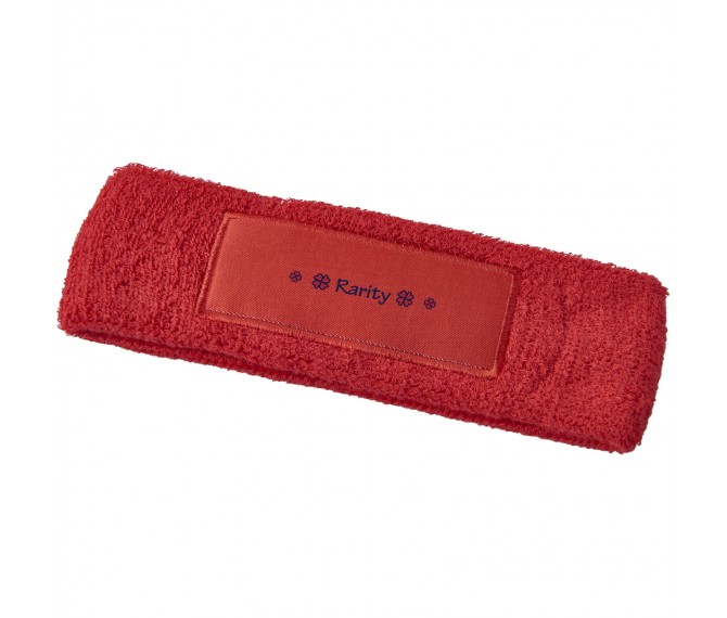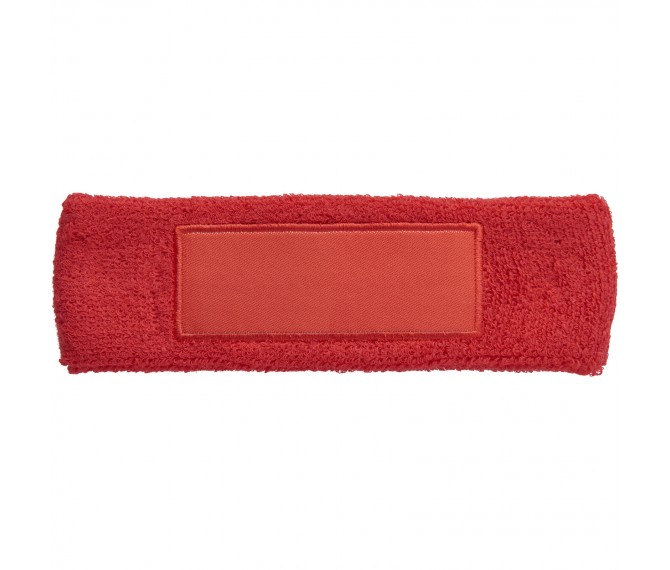 Zachte en absorberende elastische katoenen hoofdband met rechthoekige 90x30mm patch voor het plaatsen van een logo.