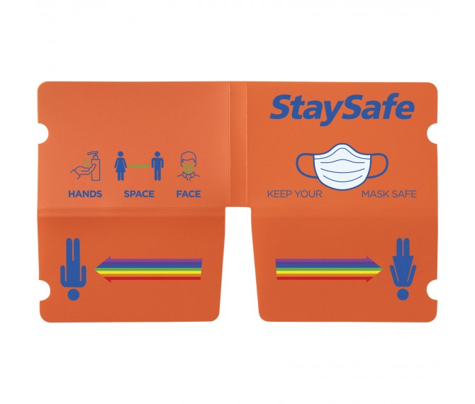 Handige opvouwbare buidel voor het hygiënisch opbergen van mondmaskers wanneer deze niet in gebruik zijn. Plaats het masker eenvoudig over het platte PP-vel, volg de vouwtekens en sluit de buidel veilig met de oorelastiekjes van het masker.