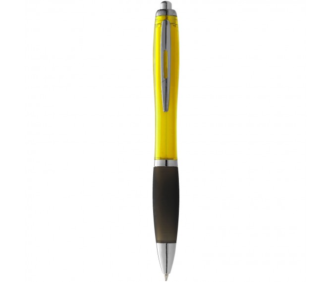 Balpen met klikmechanisme en soft touch greep. Zwart transparant. Zwartschrijvend.