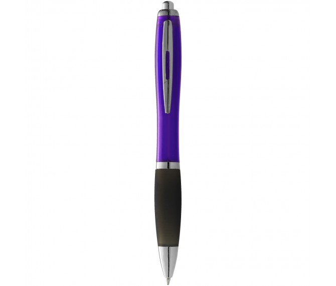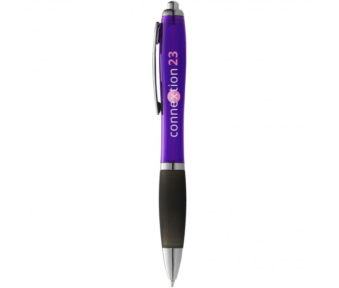 Balpen met klikmechanisme en soft touch greep. Zwart transparant. Zwartschrijvend.