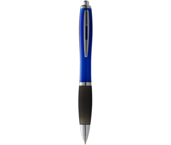 Balpen met klikmechanisme en soft touch greep. Zwart transparant Blauwschrijvend.