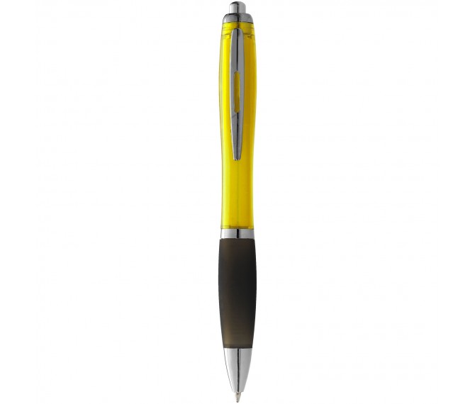 Balpen met klikmechanisme en soft touch greep. Zwart transparant Blauwschrijvend.