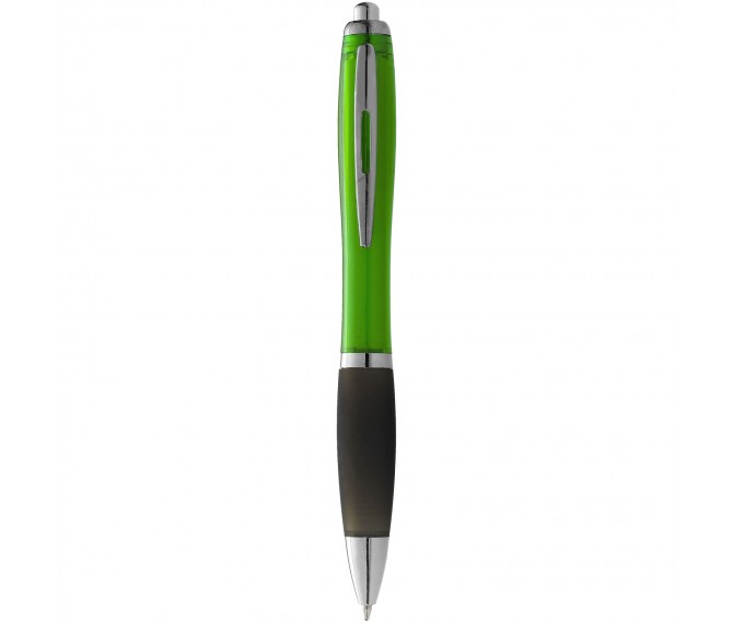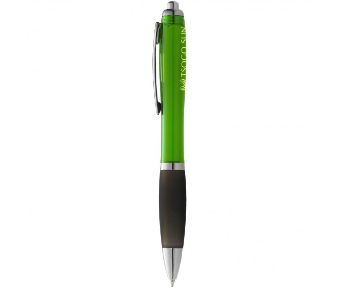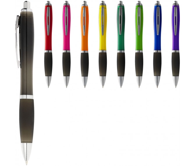 Balpen met klikmechanisme en soft touch greep. Zwart transparant Blauwschrijvend.