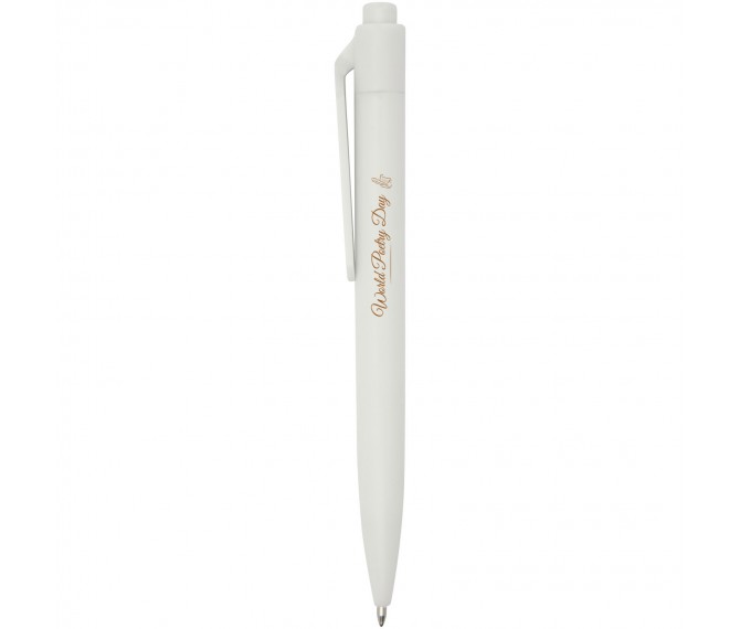 Click action-balpen gemaakt van 45% calciumcarbonaat, waardoor het gebruik van nieuw plastic wordt verminderd. Zwartschrijvend.