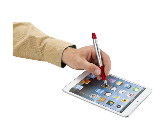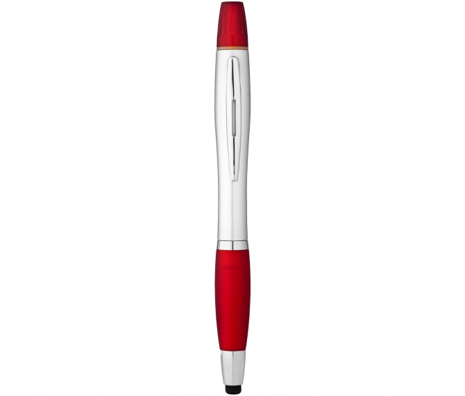 Stylus balpen met draaimechanisme, markeerstift en soft touch greep. Zwartschrijvend.