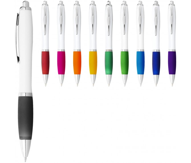 Nash balpen met witte houder en gekleurde grip (blauwe inkt)