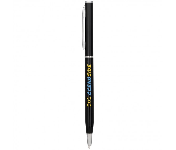 Slanke aluminium geglazuurde balpen met draaimechanisme.