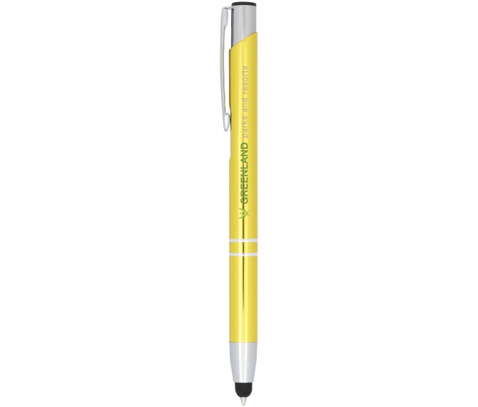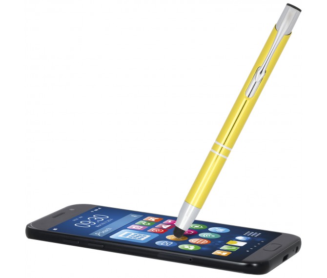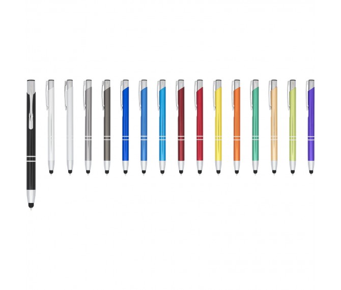 De metaalkleurige geanodiseerde balpen heeft een ingebouwde stylus aan de penpunt. De pen is verkrijgbaar in een grote variëteit aan kleuren en heeft een geanodiseerde afwerking die hem een prachtige glans geeft. Het uitgebreide en populaire Moneta-assortiment is verkrijgbaar in vele verschillende stijlen en afwerkingen.