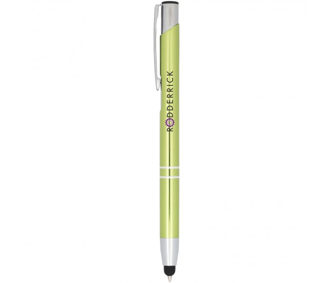 De metaalkleurige geanodiseerde balpen heeft een ingebouwde stylus aan de penpunt. De pen is verkrijgbaar in een grote variëteit aan kleuren en heeft een geanodiseerde afwerking die hem een prachtige glans geeft. Het uitgebreide en populaire Moneta-assortiment is verkrijgbaar in vele verschillende stijlen en afwerkingen.