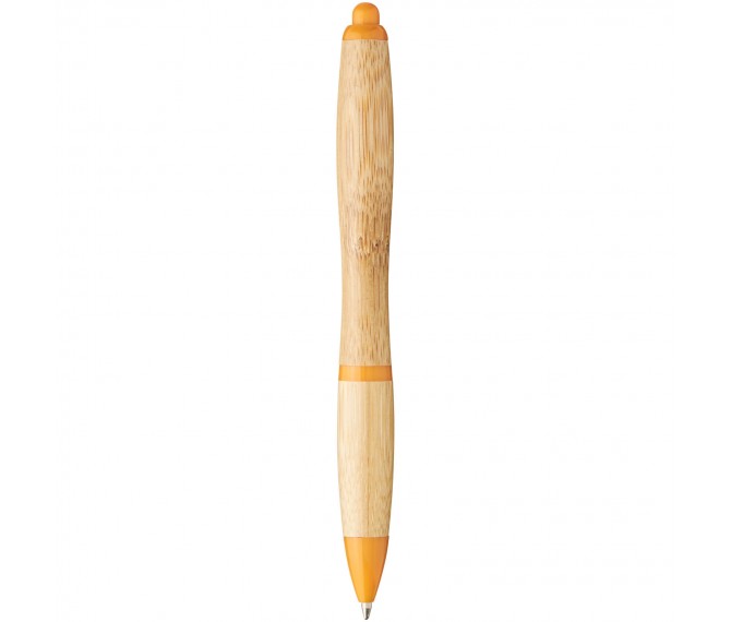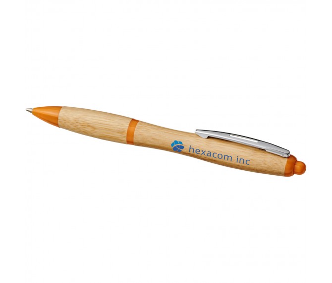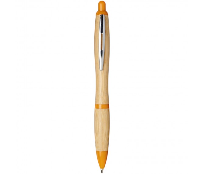 Balpen met klikmechanisme, met een huls van bamboe, geaccentueerd door een verchroomde clip en ABS kunststof sierranden. De kleur van het bamboemateriaal kan variëren.