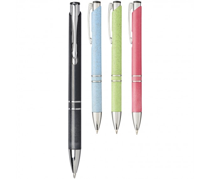 Balpen met klikmechanisme gemaakt van 48% tarwestro. Tarwestro is het overblijfsel van de stengel na het oogsten van de tarwekorrels, waardoor er minder plastic wordt gebruikt. De balpen is verkrijgbaar in veel verschillende kleuren en is afgewerkt met opvallende chromen details. Het uitgebreide en populaire Moneta-assortiment is verkrijgbaar in vele verschillende stijlen en afwerkingen.