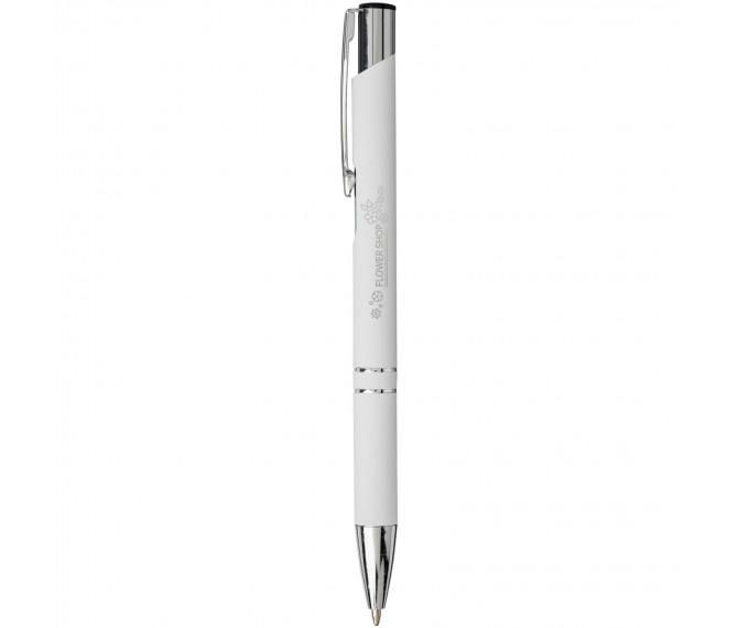 De rubberen coating geeft de pen een zachte touch, en zodra de zilveren onderlaag van de pen met een laser gegraveerd is, wordt de zilveren onderlaag van de pen zichtbaar. Balpen met klikmechanisme met zwarte rubberen coating en verchroomde afwerking en zwarte ABS bovenkant. Het uitgebreide en populaire Moneta-assortiment is verkrijgbaar in vele verschillende stijlen en afwerkingen.