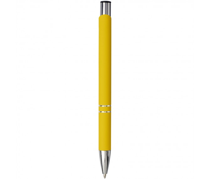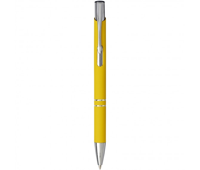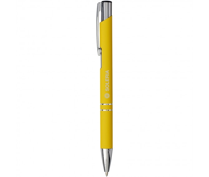 De rubberen coating geeft de pen een zachte touch, en zodra de zilveren onderlaag van de pen met een laser gegraveerd is, wordt de zilveren onderlaag van de pen zichtbaar. Balpen met klikmechanisme met zwarte rubberen coating en verchroomde afwerking en zwarte ABS bovenkant. Het uitgebreide en populaire Moneta-assortiment is verkrijgbaar in vele verschillende stijlen en afwerkingen.