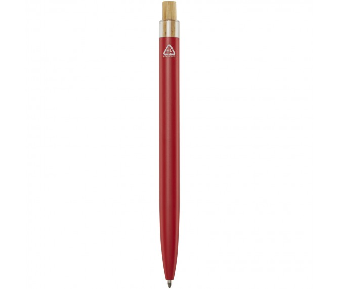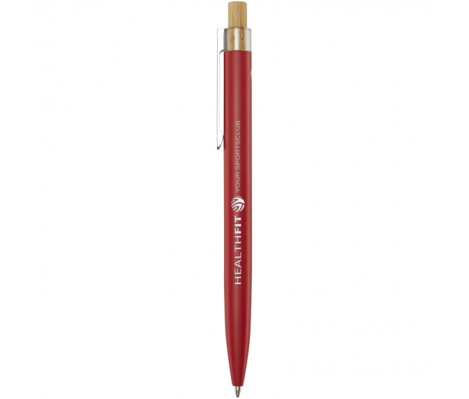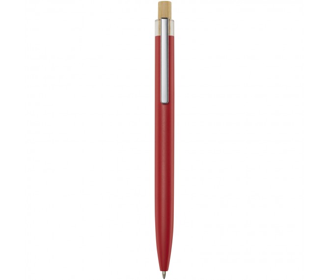 De Nooshin balpen is gemaakt van gerecycled aluminium, wat minder energie kost dan het produceren van aluminium uit grondstoffen. Het vermindert ook de hoeveelheid afval op stortplaatsen en draagt bij aan het behoud van natuurlijke hulpbronnen met als doel de uitstoot van broeikasgassen te beperken. De drukknop is gemaakt van bamboe. Inktkleur: zwart. Schrijflengte: 800 meter. Stiftmaat: 1,00 mm.