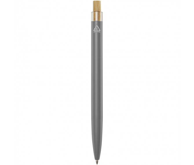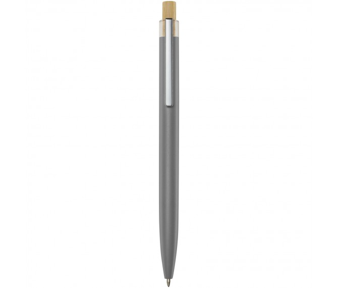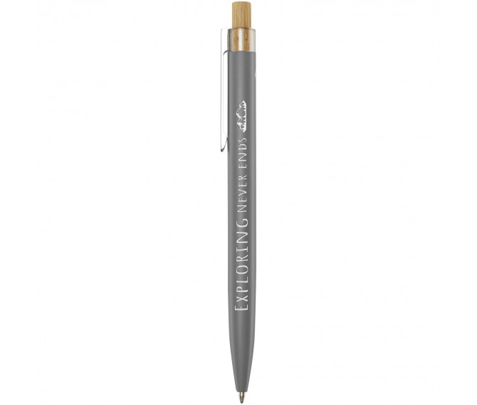 De Nooshin balpen is gemaakt van gerecycled aluminium, wat minder energie kost dan het produceren van aluminium uit grondstoffen. Het vermindert ook de hoeveelheid afval op stortplaatsen en draagt bij aan het behoud van natuurlijke hulpbronnen met als doel de uitstoot van broeikasgassen te beperken. De drukknop is gemaakt van bamboe. Inktkleur: zwart. Schrijflengte: 800 meter. Stiftmaat: 1,00 mm.