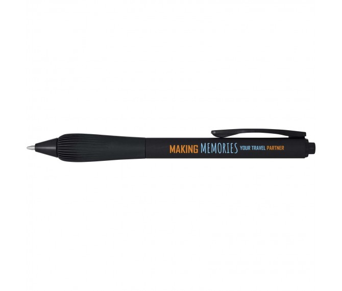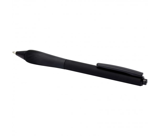 Balpen van gerecycled plastic met een rubberen houder en grip van TPR. Inktkleur: zwart. Schrijflengte: 1000 meter. Stiftmaat: 1,0 mm.