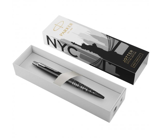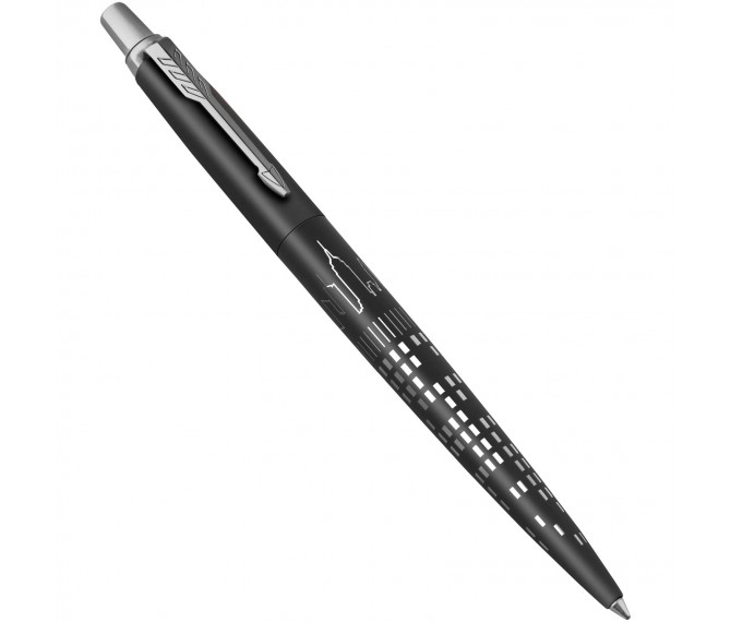 Parker Jotter SE Global Icons balpen met blauwe inkt, geleverd in een geschenkverpakking. De Parker Jotter SE Global Icons is een serie pennen van Parker, een bekend merk met een lange geschiedenis in het produceren van schrijfwaren van hoge kwaliteit. De 'SE' staat voor 'Special Edition', en het thema 'Global Icons' suggereert een ontwerp dat iconische elementen van over de hele wereld viert. Schrijflengte: 2000 meter.