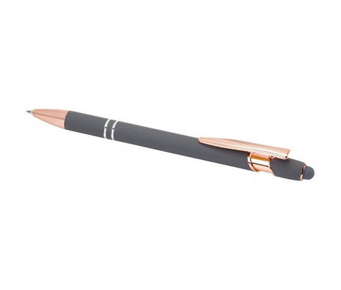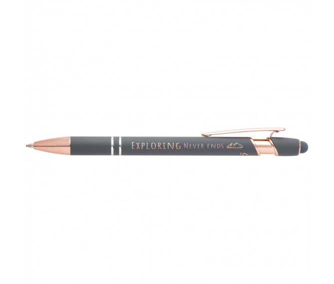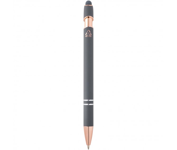 De Nanna balpen met roségouden afwerking heeft een houder van gerecycled aluminium met een siliconen touch stylus. Gerecycled aluminium vermindert de hoeveelheid afval op stortplaatsen en draagt bij aan het behoud van natuurlijke hulpbronnen, met als doel de uitstoot van broeikasgassen te verminderen. Inktkleur: Blauw. Schrijflengte: 800 meter. Stiftmaat: 1,0 mm.