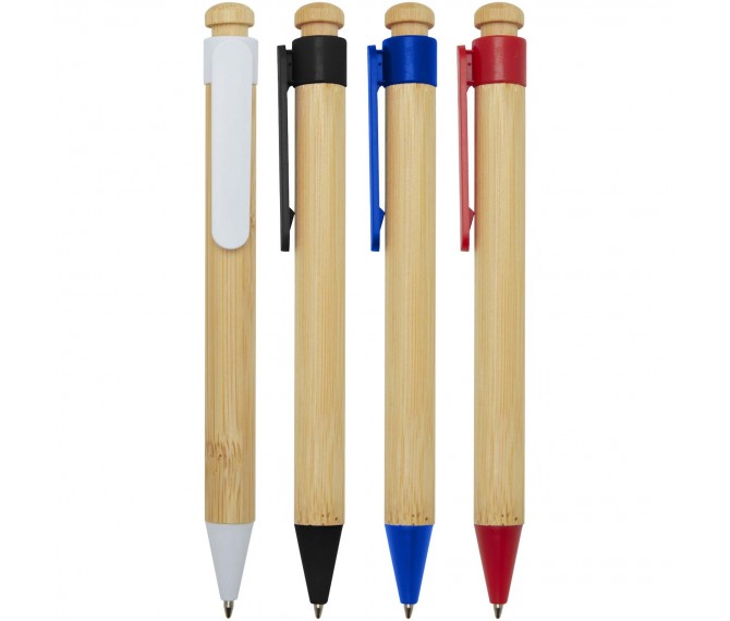 Balpen met clip en punt van gerecycled plastic, en de knop en de houder zijn gemaakt van bamboe. Inktkleur: zwart. Schrijflengte: 1000 meter. Stiftmaat: 1,0 mm.