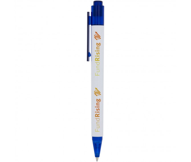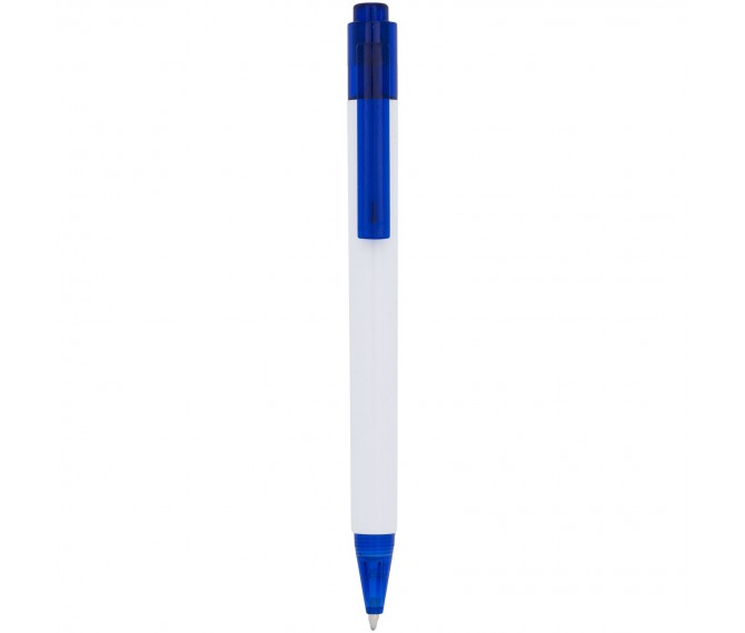 De Calypso-balpen heeft een gladde, witte greep met een doorschijnende gekleurde punt en clip.