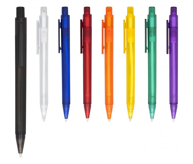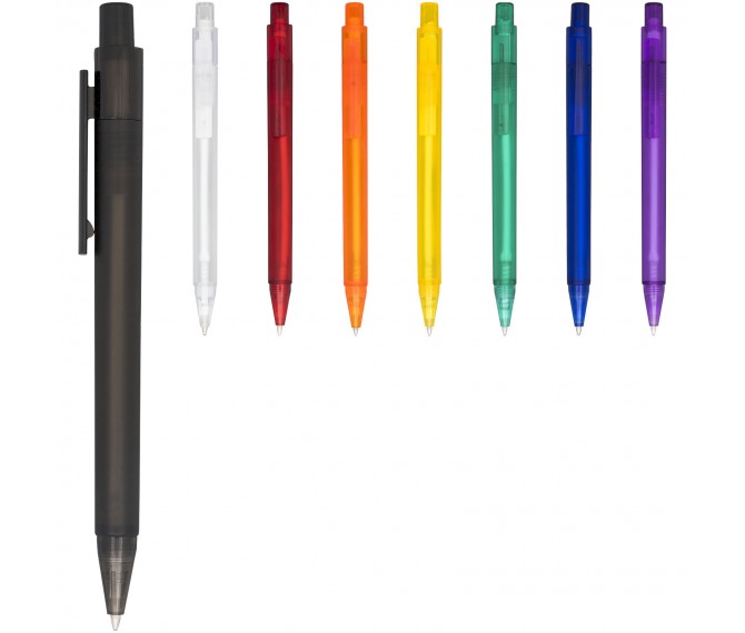 De Frosted Calypso-balpen heeft een trendy, matgekleurde greep en een groot druk oppervlakte.