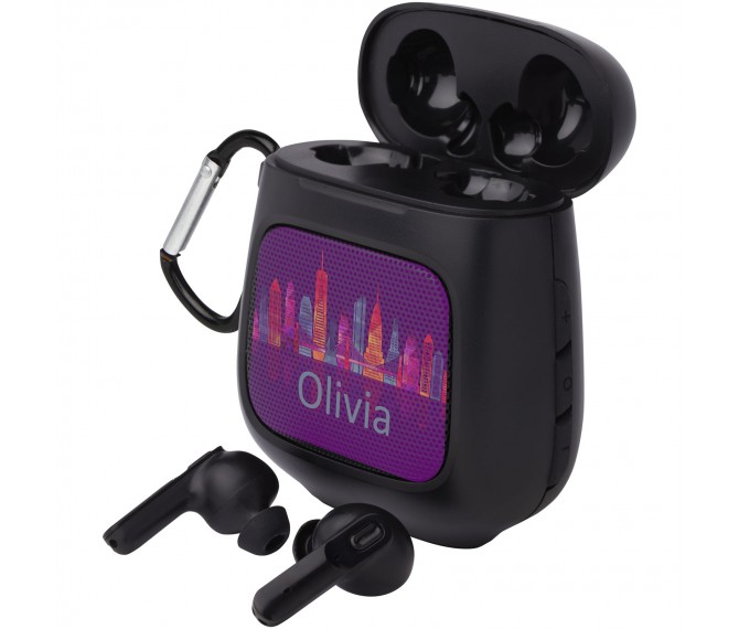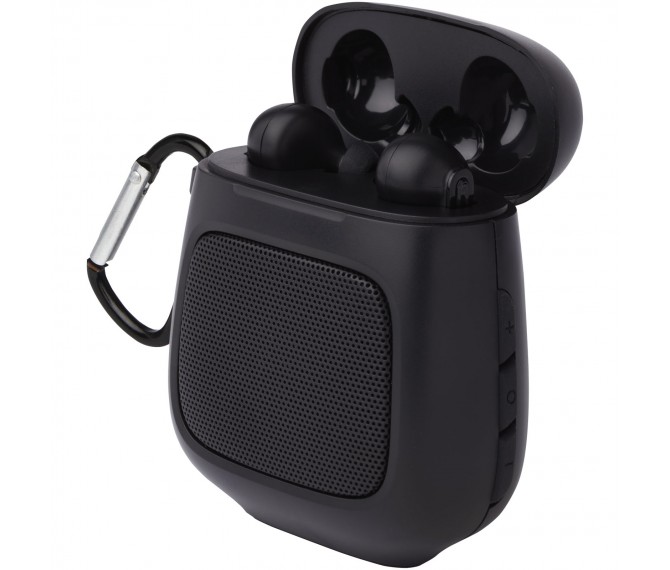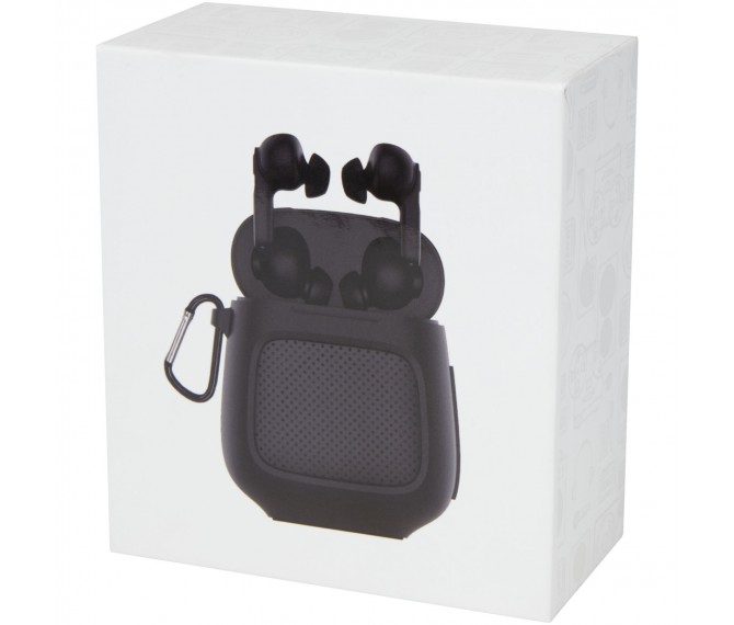 De Remix combineert True Wireless oordopjes met een Bluetooth®-speaker. Zodra de oordopjes uit de case worden gehaald, gaan ze automatisch aan en synchroniseren ze met elkaar. De case fungeert ook als laadstation voor de oordopjes en als een Bluetooth®-speaker. De case kan de oordopjes vier keer opladen van 0 tot 100% met een enkele keer opladen en de oordopjes kunnen ten minste 4 uur worden gebruikt voordat opnieuw opladen nodig is. Door het ergonomische ontwerp van de oordopjes blijven ze comfortabel en stevig op hun plaats zitten als u onderweg bent. Het duurt ongeveer 2 uur om de oordopjes en speaker van 0 tot 100% op te laden. Zowel de oordopjes als de speaker hebben een ingebouwde microfoon en muziekbediening voor het ontvangen of voeren van telefoongesprekken. Bereik van Bluetooth® is 10 meter. Inclusief middelgrote- en grote eargels. Geleverd in een premium geschenkverpakking.