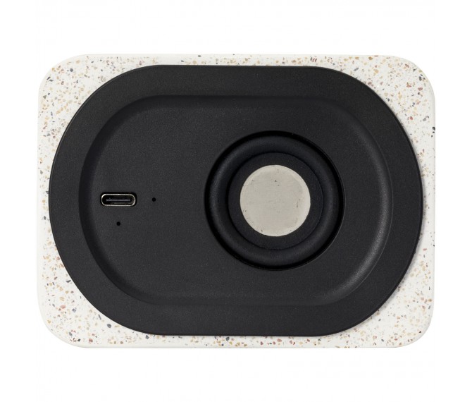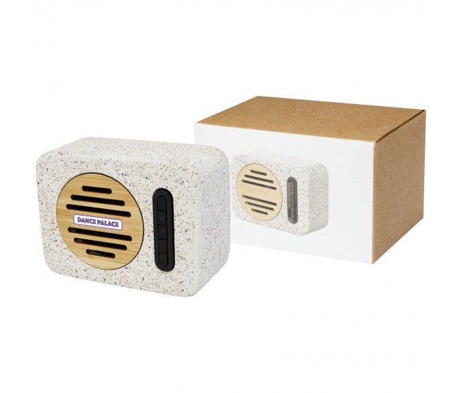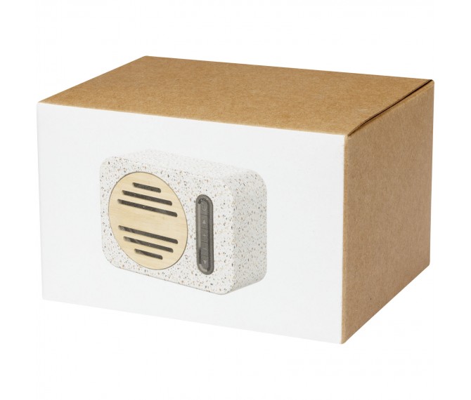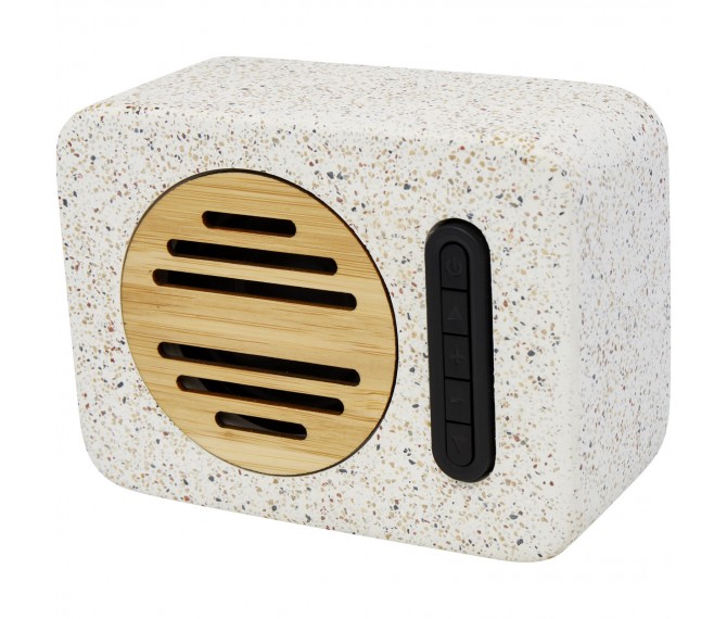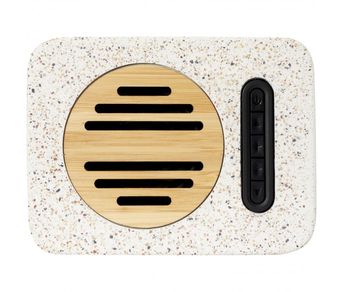 Bluetooth®-speaker gemaakt van een combinatie van natuurlijk terrazzo en bamboe. Het uitgangsvermogen van de speaker is 5 W en hij heeft een lithium-polymeerbatterij van 500 mAh. Bereik van Bluetooth® 5.0 is tot 10 meter. Deze speaker biedt tot 2 uur afspeeltijd op maximaal volume en het duurt ongeveer 2 uur om van 0% tot 100% op te laden. Geleverd in een geschenkverpakking inclusief handleiding (beide gemaakt van duurzaam materiaal).
