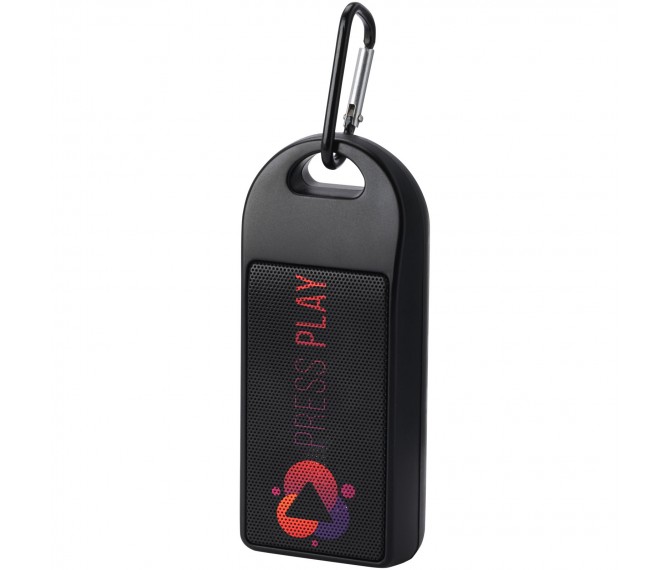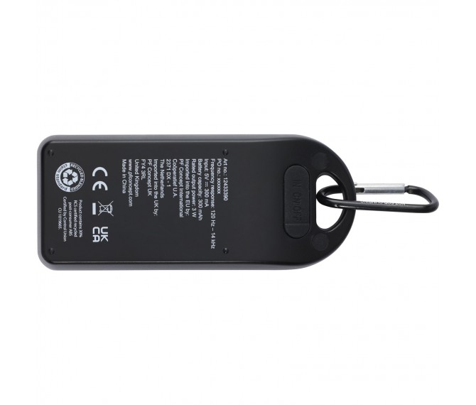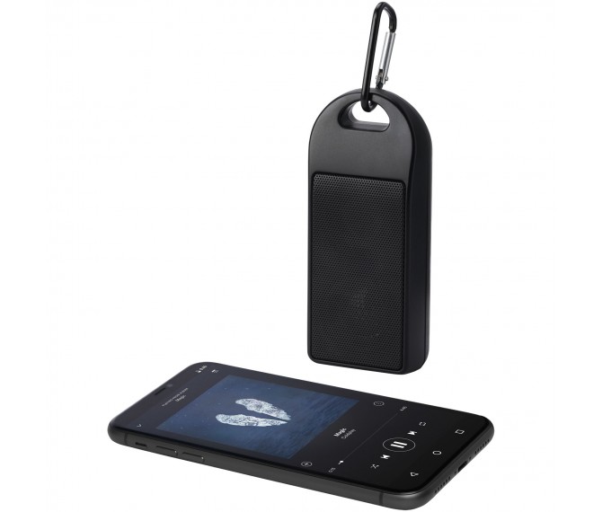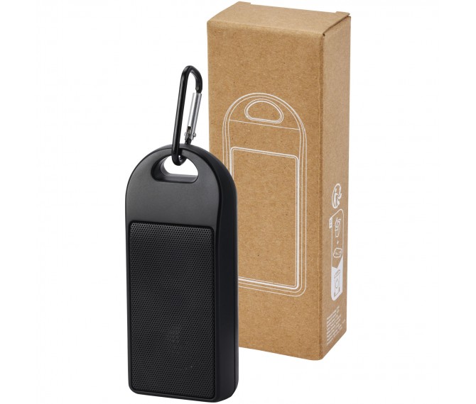 RCS gerecyclede 3 W Bluetooth®-speaker die muziek, podcasts enz. afspeelt vanaf elk Bluetooth®-apparaat, waardoor het een ideale metgezel is voor elke gelegenheid. Dankzij de meegeleverde karabijnhaak bevestig je de speaker eenvoudig aan een rugzak en is hij door de IPX4-rating beschermd tegen een sporadische regenbui. Geniet tot 1,5 uur van muziek op maximaal volume dankzij de 300 mAh Li-ionbatterij. De oplaadtijd is 1,5 uur. Bluetooth® 5.0 met een werkbereik van ongeveer 10 meter. Geleverd met een gebruikershandleiding, een karabijnhaak, een 50 cm USB-A naar Type-C-oplaadkabel en verpakt in een doos van gerecycled kraftpapier.