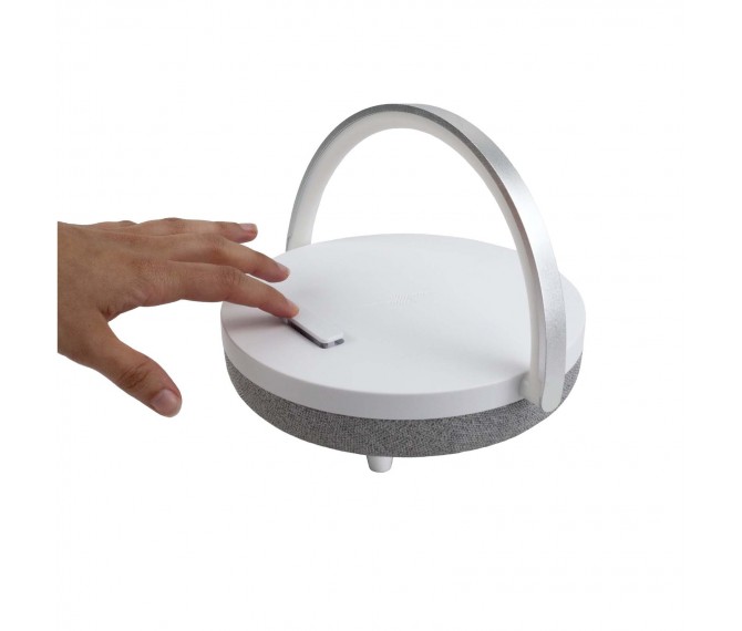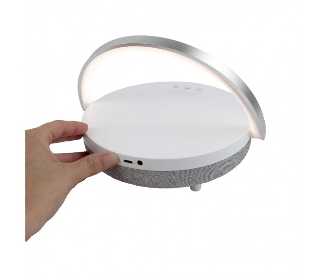 Dit item heeft 4 verschillende functies: Een draadloze Bluetooth®-speaker, een draadloze oplaadstation, een ledlamp met 3 instelbare helderheidsniveaus en een mobiele telefoonhouder. Dankzij de multifunctionele functie kun je genieten van je favoriete muziek terwijl je je telefoon oplaadt. Geleverd met een type-C-oplaadkabel en een aux-kabel.
