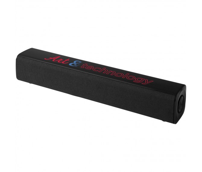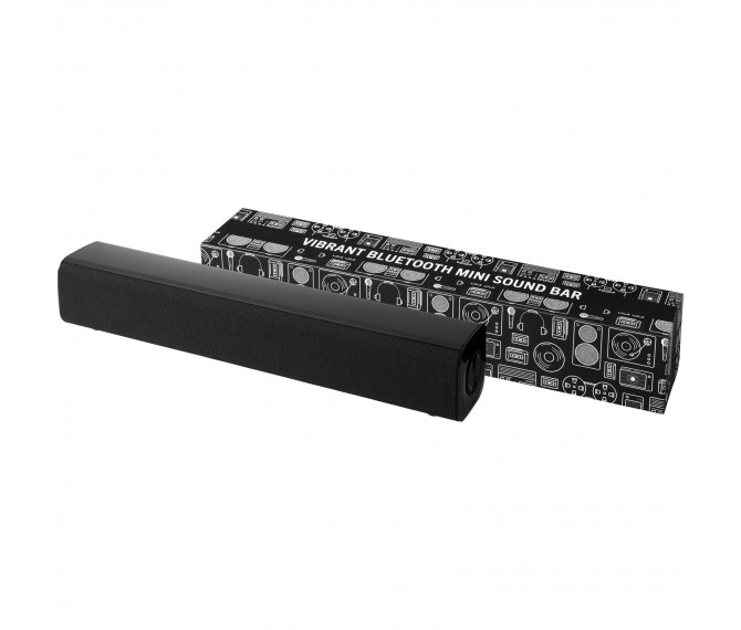 De Vibrant Bluetooth® mini soundbar is een geweldige aanvulling op een home-entertainmentsysteem. Hij kan eenvoudig worden aangesloten op een TV via Bluetooth®, een 3,5 mm Aux-kabel (meegeleverd) of RCA-kabel (meegeleverd). Het compacte formaat maakt het ook gemakkelijk om onderweg te gebruiken op een laptop, smartphone of tablet. De passieve radiator zorgt voor een beter geluid in vergelijking met de meeste standaard Bluetooth® speakers. Hoogwaardige geluidskwaliteit tegen een redelijke prijs. Micro USB-oplaadkabel inbegrepen. Afspeeltijd: Drie uur. Oplaadtijd: Twee uur. Uitgang: 5 watt x 2.