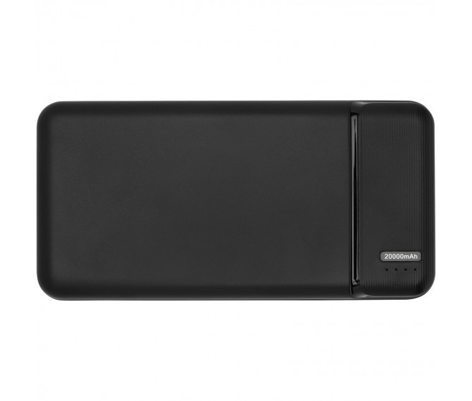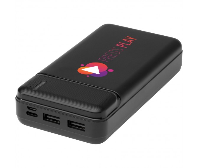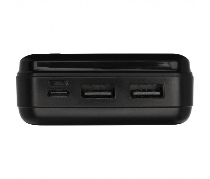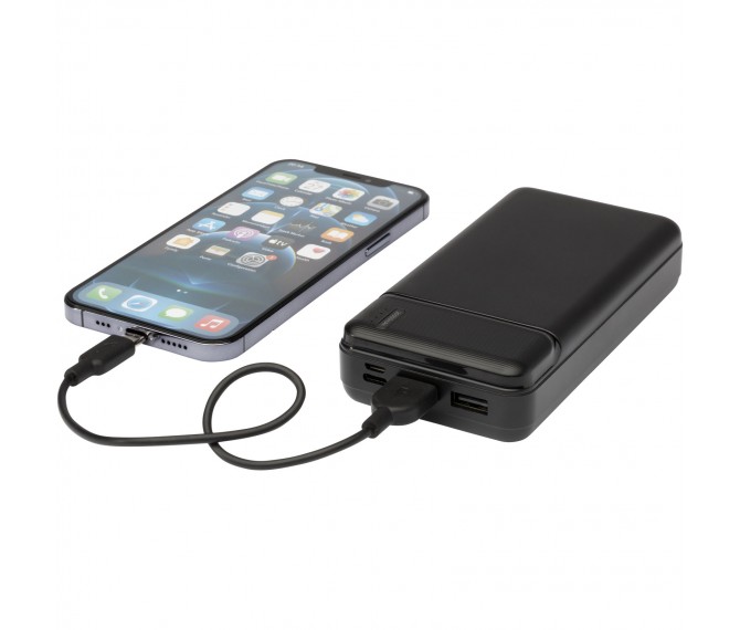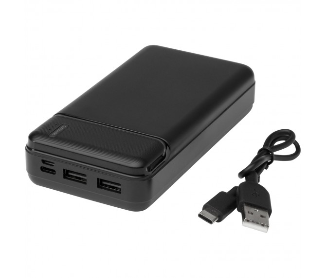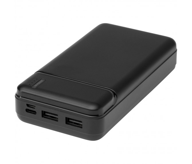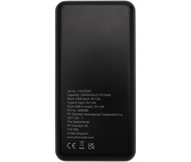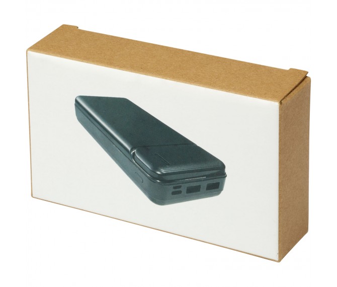 Powerbank gemaakt van gerecycled ABS plastic. De powerbank bevat een duurzame 20.000 mAh lithiumpolymeerbatterij van duurzame kwaliteit A voor snel opladen. De stroomindicatoren geven het resterende energieniveau aan, zodat je altijd weet wanneer je moet opladen. Type-C-ingang 5 V/2 A, Micro-USB-ingang 5 V/2 A, dubbele USB-A-uitgang 5 V/2 A, totaal vermogen 10 W. Geleverd met een 30 cm TPE 2A USB-A naar type-C-oplaadkabel, een handleiding en een geschenkverpakking van kraftpapier.