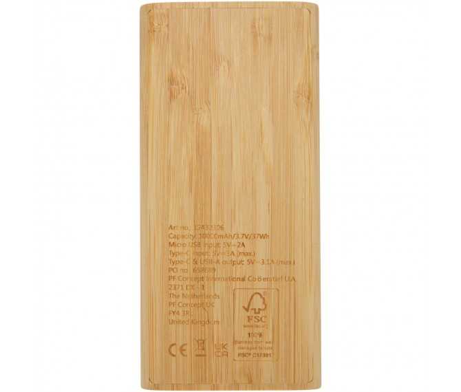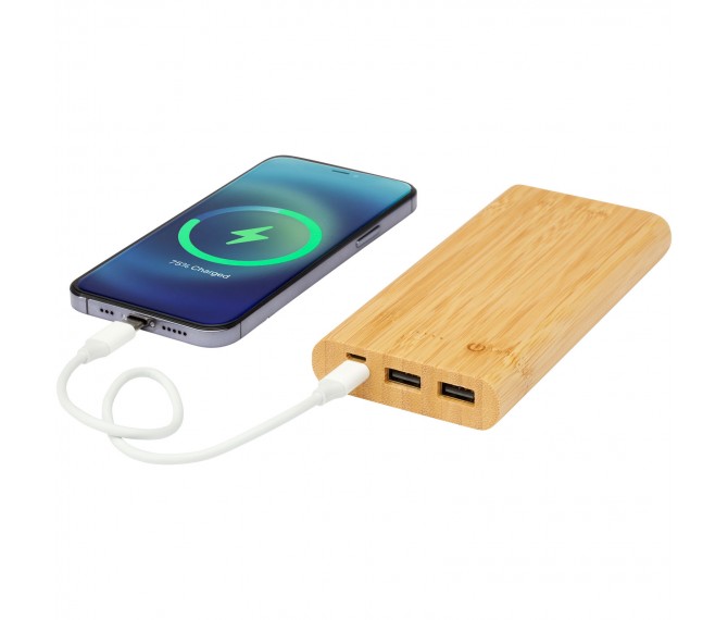 10.000 mAh powerbank gemaakt van bamboe, met een AAN/UIT-knop en 4 LED-indicatoren om de resterende batterijcapaciteit aan te geven. Micro-USB-ingang 5 V/2 A, Type-C-ingang 5 V/3 A, Type-C-uitgang 5 V/3,1 A max, dubbele USB-A-uitgang 5 V/3,1 A max, totaal vermogen 15,5 W. Geleverd met een 30 cm TPE 3A type-C naar type-C-oplaadkabel, een handleiding en een geschenkverpakking van kraftpapier. Aangezien bamboe een natuurproduct is, kunnen er per item kleine kleur- en maatafwijkingen zijn, wat het uiteindelijke drukresultaat kan beïnvloeden.