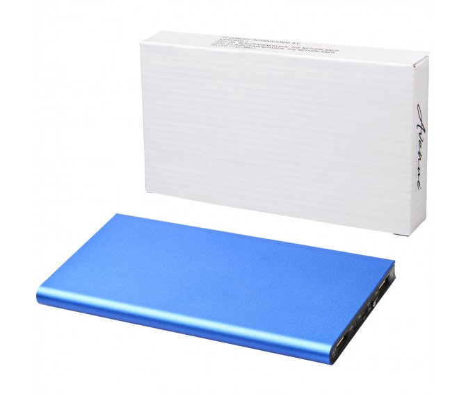 De Plate 8000 mAh aluminum powerbank heeft een 8000 mAh Grade A lithium-polymeer batterij en heeft een slank design. De LED-indicator licht op tijdens het opladen en geeft de in de powerbank resterende batterijcapaciteit weer. Het heeft een input en output van 5V/2A en is gemaakt van duurzaam aluminium. Inclusief USB naar Micro USB oplaadkabel. Geleverd in een witte Avenue geschenkverpakking.